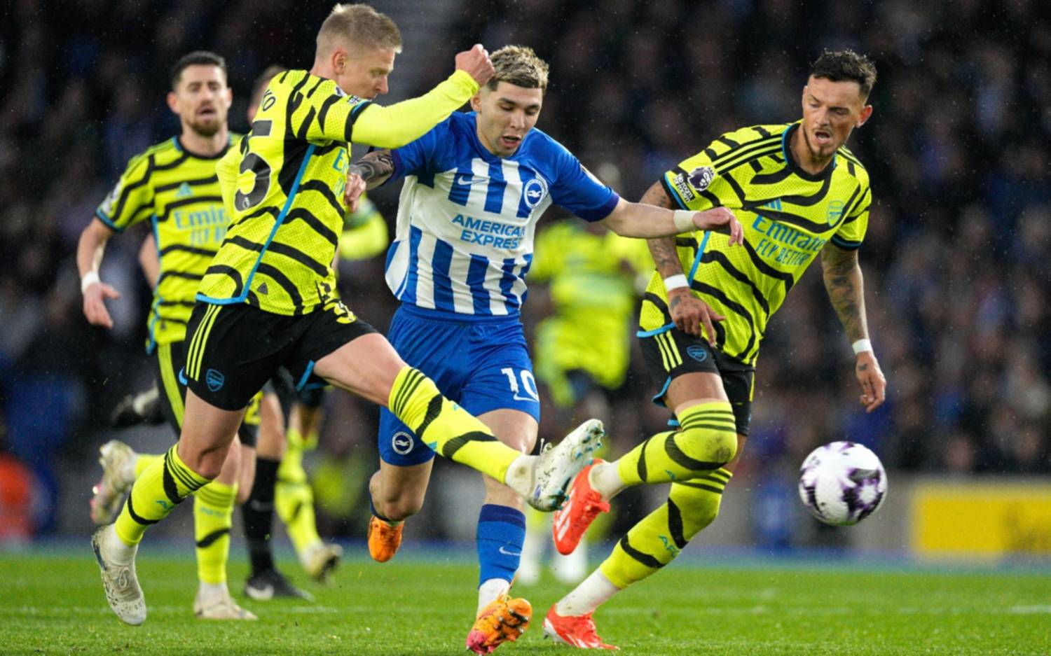 Arsenal (71) no detiene su gran presente y con una goleada por 3 a 0 al Brighton, agigantó su sueño de ganar la Premier. Los goles fueron de Saka de penal, Havertz y Trossard. En tanto que el City (70) goleó 4-2 al Crystal Palace y sigue a la expectativa. Además, Aston Villa 3, Brentford y Everton 1, Burnley 0. Hoy. Manchester Utd-Liverpool (11:30, ESPN).
