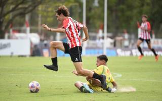 A los 8 minutos llegó la apertura con un golazo de Tiago Palacios, que recibió en el vértice derecho tras un tiro de esquina que jugó rápido Cetré para Sosa y este habilitó al uruguayo, que no bien entró al área le reventó el arco al arquero rival para el 1-0 que empezaba a marcar una tendencia.