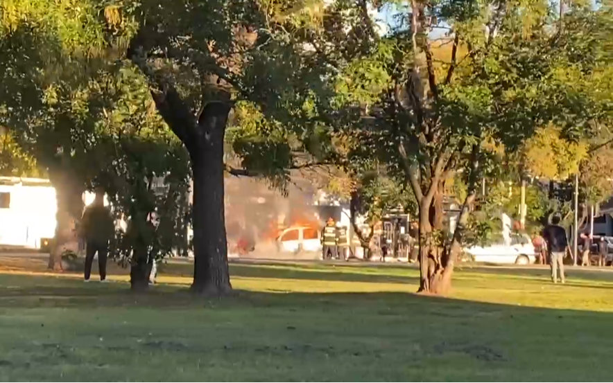 En pocos segundos, el fuego devoró el vehículo desde la parte inferior. En medio de la desesperación, el conductor logró sacar a su familia, algunas pocas pertenencias y ponerse fuera de peligro.