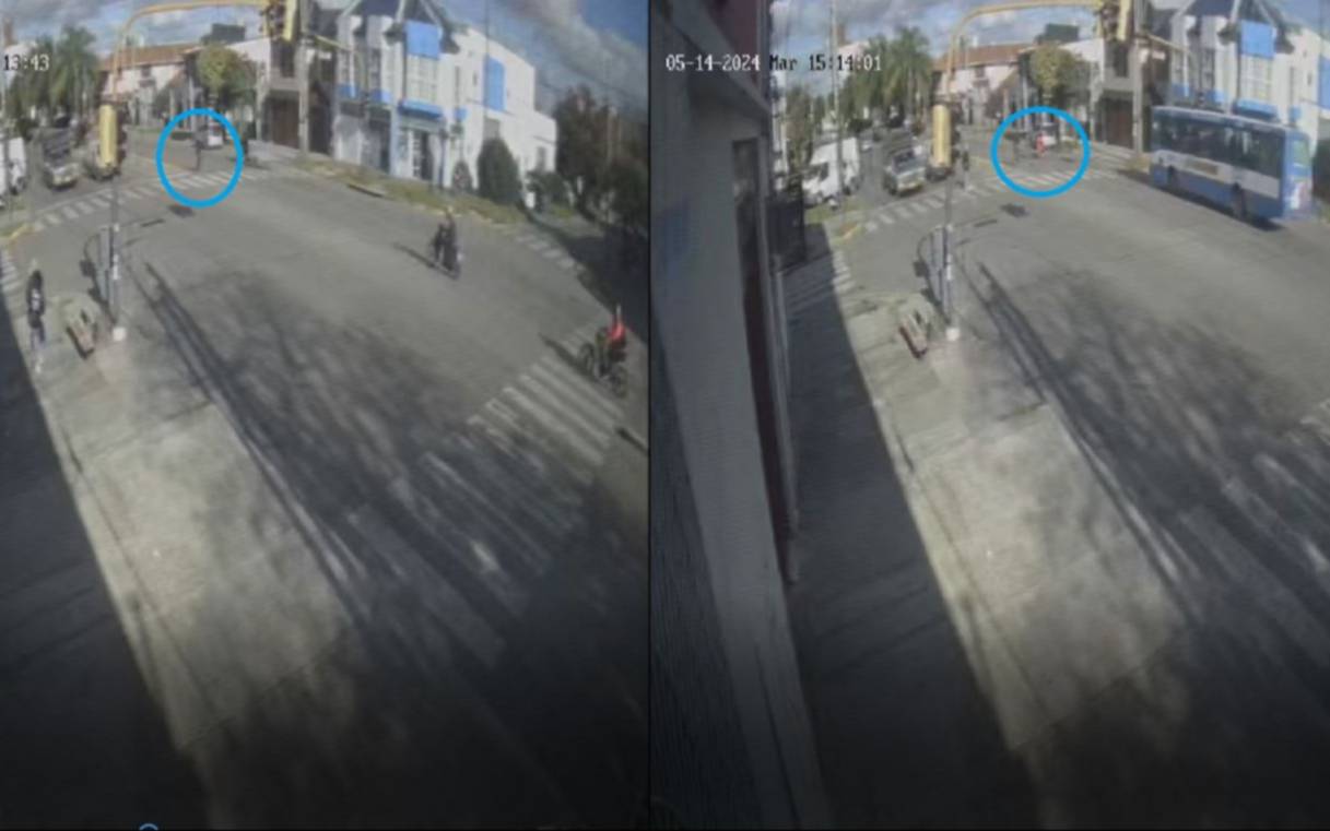 Las cámaras de seguridad de un comercio cercano pudieron captar la secuencia. En él se ve a la mujer cruzando por la senda peatonal, sobre avenida 7 mientras una motocicleta pasa “en rojo” y la embiste, arrastrándola varios metros.