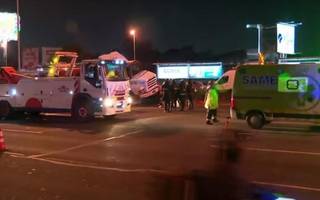 Un fatal accidente múltiple ocurrió cerca de las 21.30 horas de este domingo, en la Autopista Panamericana, a la altura de Vicente López, donde un camión chocó contra un auto, tras desprenderse de uno de sus contenedores.