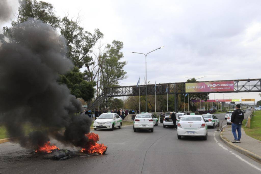 El punto de encuentro del reclamo, que comenzó a las 9, fue en el Bosque. Después de un rato de plantarse en ese paseo los taxistas se desplazaron a la rotonda de 122 y 32. Allí, con quema de neumáticos, cortaron el tránsito, y de esa manera quedó restringida la subida a la Autopista en dirección a CABA.