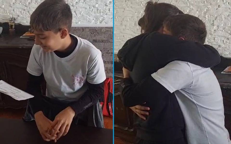 Con total sorpresa, el chico quedó enmudecido y abrazó a su tía tras recibir el enorme regalo que le permitirá estar presente en el estadio Madre de Ciudades el domingo. En cuestión de segundos, el chico no pudo contener las lágrimas y estalló de emoción al escuchar: "Vamos a la cancha los dos?".