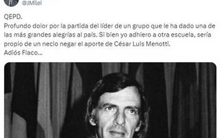 "La Asociación del Fútbol Argentino lamenta informar con enorme tristeza el fallecimiento de César Luis Menotti, actual Director de Selecciones Nacionales y ex técnico Campeón del Mundo de @Argentina. ¡Hasta siempre, Flaco querido!", escribió la AFA en sus redes sociales.