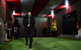 Enzo aprovechó la oportunidad para saludar al plantel y se sumó a realizar algunos ejercicios junto a los jugadores.