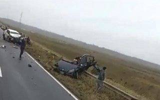 Al menos cinco personas, tres de ellas menores de edad, murieron ayer al mediodía cuando el auto en el que viajaban chocó frontalmente contra una camioneta.