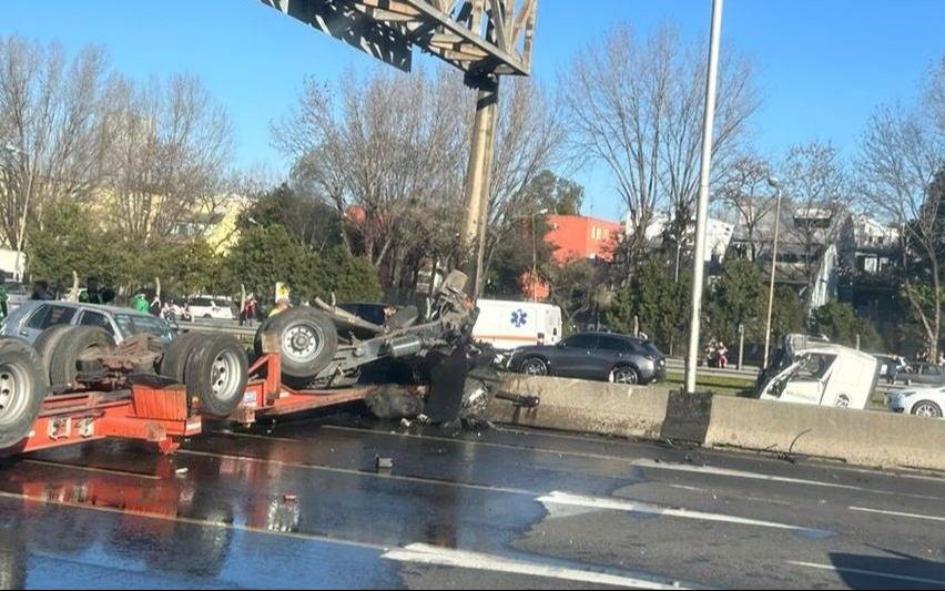 El incidente vial ocurrió a la altura de Bancalari, entre los distritos bonaerenses de San Isidro y Tigre, por lo que habían quedado obstruidos tres carriles al norte y otros dos a Capital. El acoplado terminó sobre una mano y la cabina en la otra, por lo que se complicó por varias horas el tránsito en ambos sentidos.