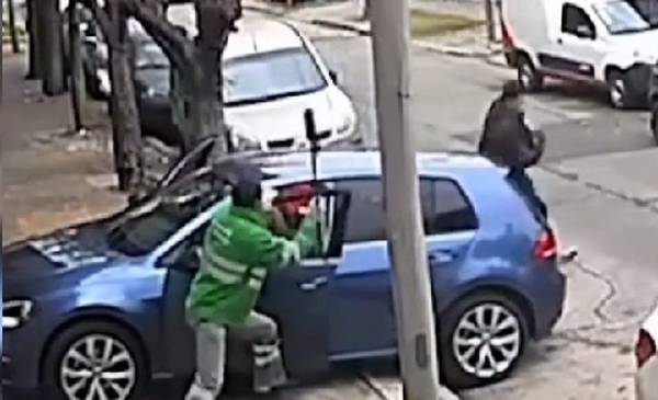En medio de los gritos desesperados del hombre y otros vecinos que presenciaban la secuencia, la demora de los delincuentes en poder arrancar el auto y salir, le dio tiempo a un barrendero que trabaja en la zona que llegó corriendo y, utilizó el palo de su escoba de trabajo como si fuese una lanza y comenzó a golpear al ladrón que estaba en el asiento del conductor.