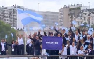 Parte de los 136 deportistas argentinos que participará en 25 disciplinas apareció en el Río Sena, luego de la delegación de Arabia Saudita, con el típico color y alegría que tienen los representantes nacionales y cantando "vamos vamos, Argentina".