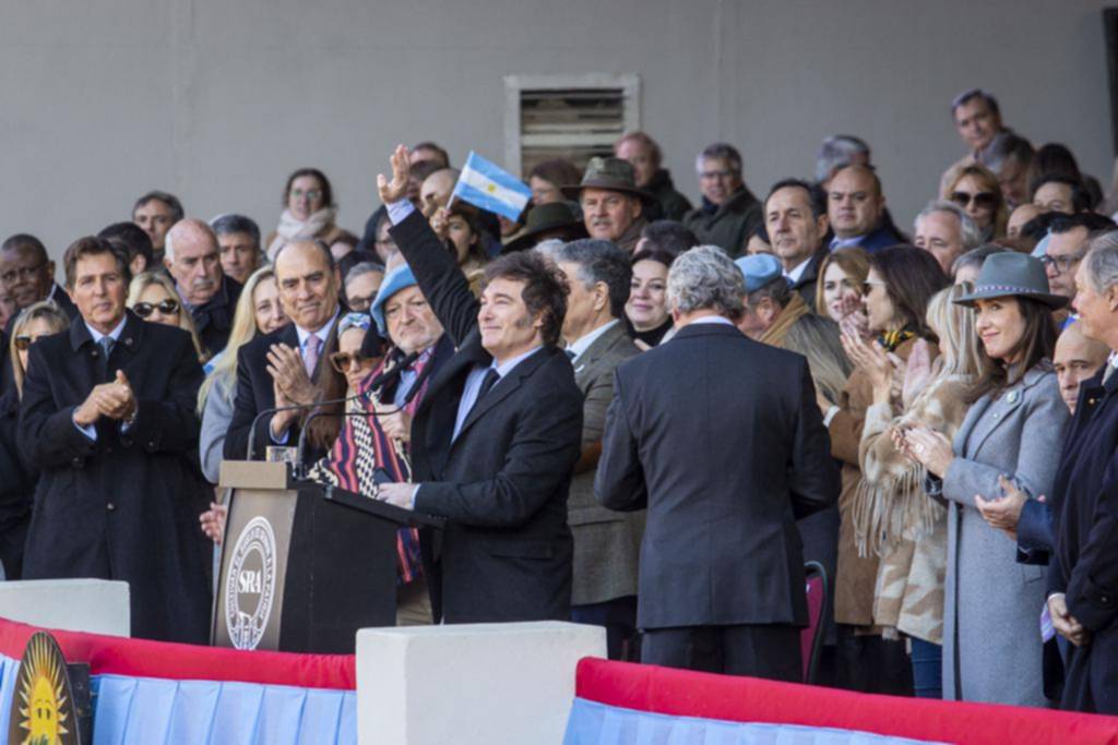 El anuncio de Milei sucedió al mensaje del titular de la Sociedad Rural, Nicolás Pino, quien, si bien celebró la presencia del mandatario en la muestra, reclamó “la certeza” de que el Gobierno eliminará las retenciones (ver página 5).