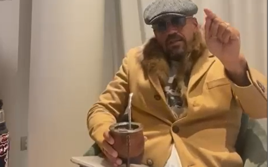 La Brujita se calzó el tapado de piel con el que se viralizó en pandemia un video suyo, junto a Deian, y se mostró irónico, post clásico platense. “Hermosa semana, ¿verdad?”, dice en el arranque.