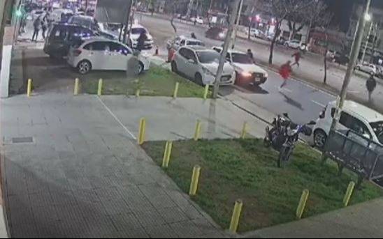 El hecho quedó grabado por una cámara de seguridad aledaña, que captó como los agresores huyeron, mientras los agredidos intentaban perseguirlos. De todas maneras, la policía llegó poco después al lugar y no hubo detenidos.