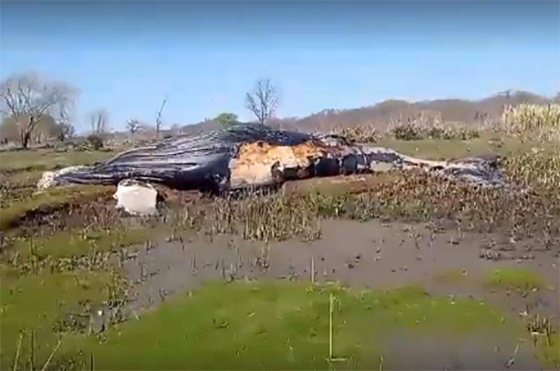 Por esas horas también se hizo pública la situación con una ballena que llevaría semanas en estado de agonía varios kilómetros al sur, en una zona aledaña a la desembocadura del Río Salado.