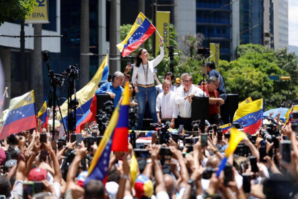 Corina Machado, en una nutrida marcha, defendió el triunfo electoral de González Urrutia. “Los vamos a hacer ceder”, dijo