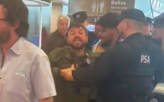 Al grito de “chorro” y “ladrón”, un grupo de pasajeros que esperaban para tomar sus vuelos cuestionaron el dirigente social que reaccionó a los gritos y debió ser cercado por efectivos policiales mientras los celulares lo apuntaban.