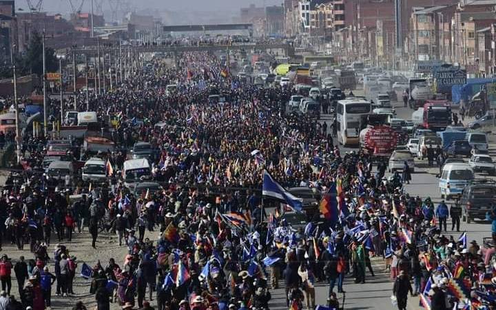 Una marcha multitudinaria en contra del gobierno de Bolivia, liderada por el expresidente y antes aliado Evo Morales, llegó ayer a las puertas de La Paz sin hallar resistencia, incluso entre aplausos, tras los violentos choques del domingo que dejaron una veintena de heridos.