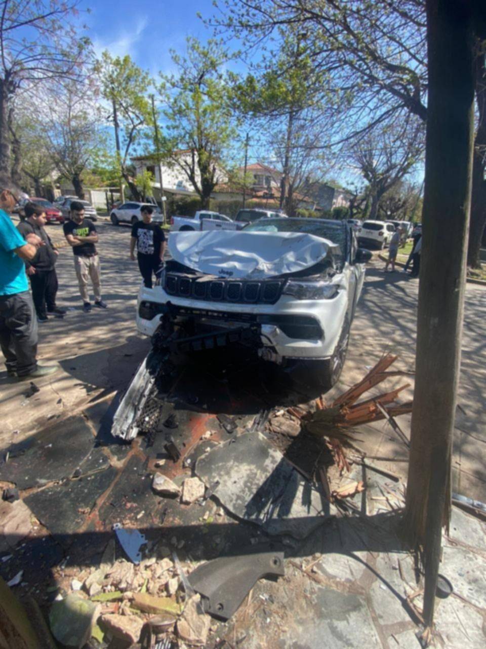 Por motivos que no se establecieron hasta el momento, el futbolista albirrojo, que según informaron testigos transitaba a alta velocidad, impactó su camioneta blanca contra otra color gris, lo que derivó en que termine incrustándose en un poste de luminaria pública ubicado en la mencionada esquina.