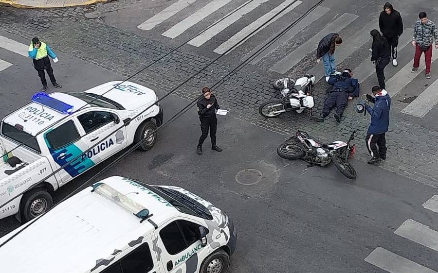 Las cámaras del COM (Centro de Operaciones y Monitoreo) captaron el impacto, cuando uno de los conductores terminó tendido en el suelo. Una ambulancia del SAME y un móvil policial se acercaron al lugar.
