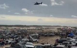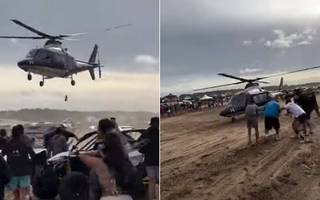 El hecho ocurrió ese domingo pero se conoció tras la viralización de fotos y videos. Turistas y locales disfrutaban de la playa “La Olla”, hasta que en un momento un helicóptero, a baja altura, se acercó hasta la zona de los médanos, comenzó a tirar dólares y luego descendió, lo que provocó un riesgo enorme para todas las personas del lugar.