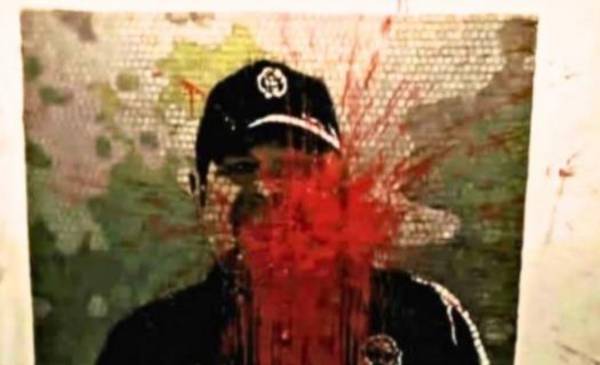 La imagen de maradona fue dañada con pintura roja / EL DIA