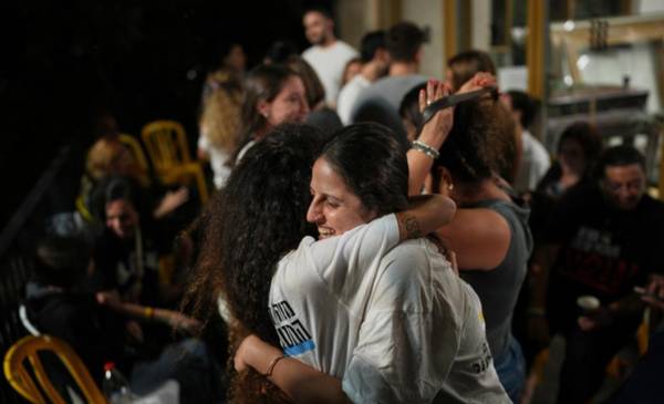 Un grupo de israelíes radiantes cantó y bailó las tradicionales danzas circulares y otros saltaron de alegría en una plaza céntrica de Tel Aviv que desde el estallido de la guerra en Gaza tras el ataque del 7 de octubre de 2023 Hamás es conocida como “La Plaza de los Rehenes”.