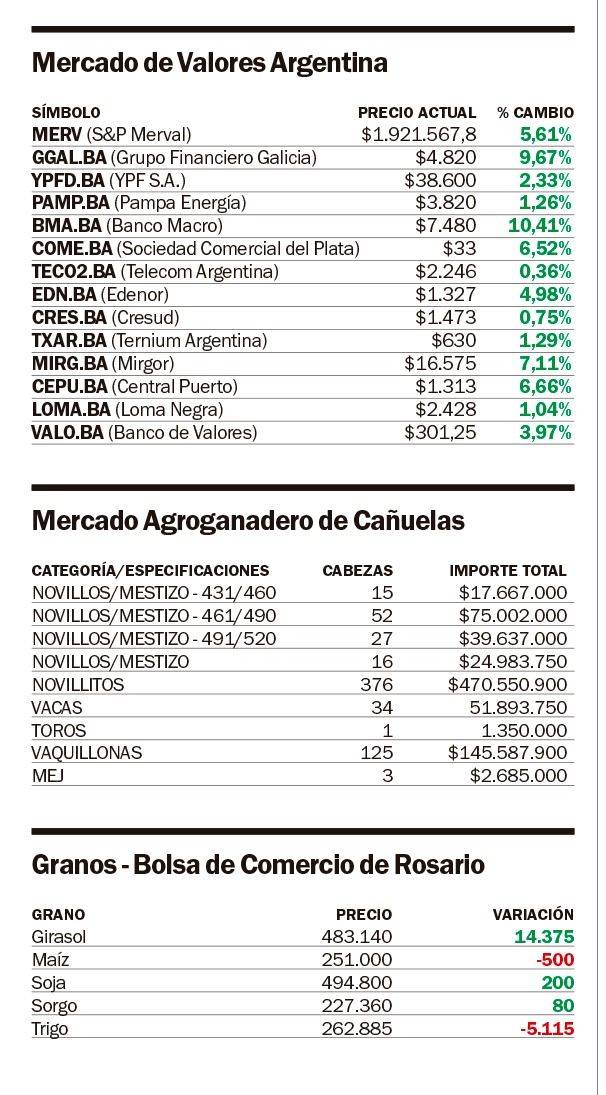 La última rueda hábil antes del feriado por el Día del respeto a la diversidad cultural dejó una jornada de euforia en los mercados financieros argentinos. Los bonos soberanos en dólares extendieron su recuperación por segunda sesión consecutiva, el S&P Merval cerró con una fuerte suba del 5,8%, y los ADRs argentinos en Wall Street registraron avances que superaron el 20%.