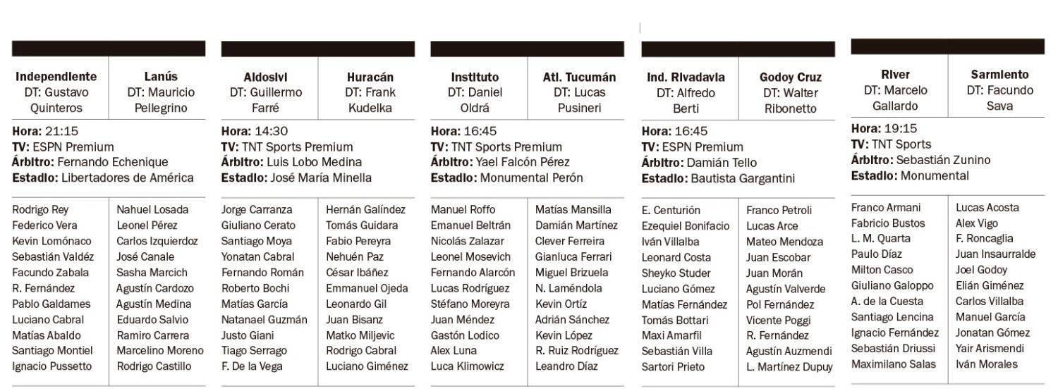 Por su parte y más temprano, desde las 16:45, se juega uno de los clásicos de Mendoza. En el Bautista Gargantini, Independiente Rivadavia recibe a Godoy Cruz, en un duelo con realidades distintas. La lepra suena con los playoffs y el Tomba, con salvarse del descenso. A la misma hora, Instituto recibe a Atlético Tucumán con la intención de levantar y en primer turno, a las 14:30, Aldosivi recibe a Huracán con la ilusión de levantar para no irse al descenso.