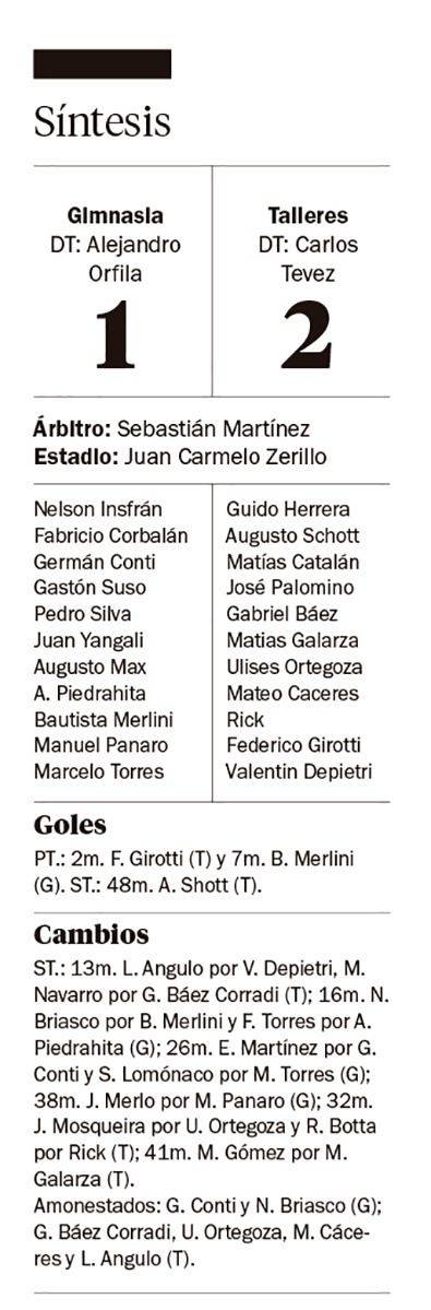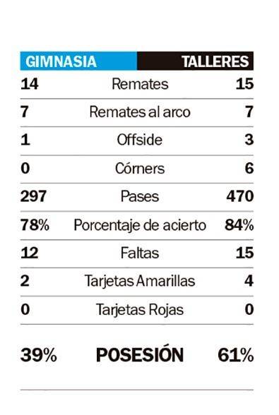 El juego perdió lo vibrante y quedaron solo los errores. Gimnasia, estático, no encontró la pelota y no supo tenerla, por lo que las posesiones no le duraron. Talleres, mejor hasta tres cuartos, careció de profundidad en los últimos metros.