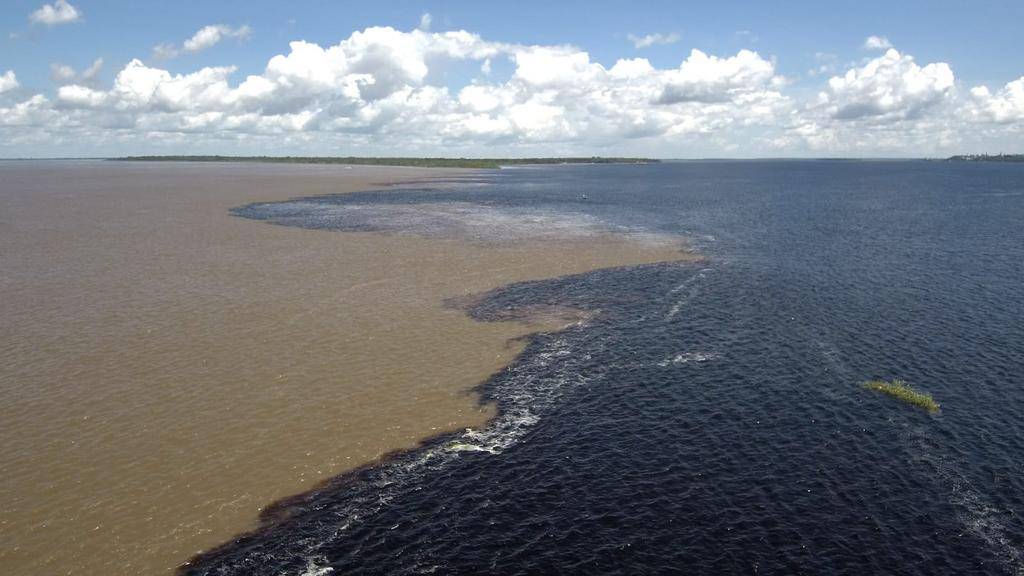 Impresionante imagen del encuentro del aguas. En marrón, el Amazonas y en negro su gran tributario, el Río Negro, el río color té