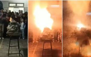 “Ví como un chico se prendió fuego de pies a cabeza”, añadió el menor y sostuvo que el objeto que se incendió era “una mesa de madera”.