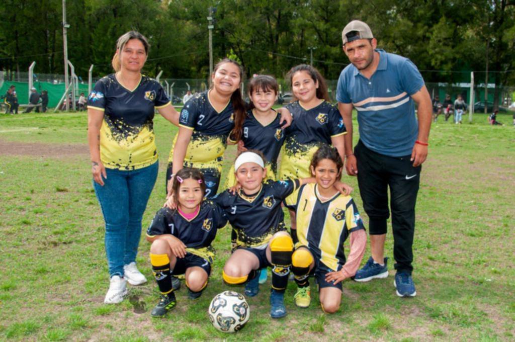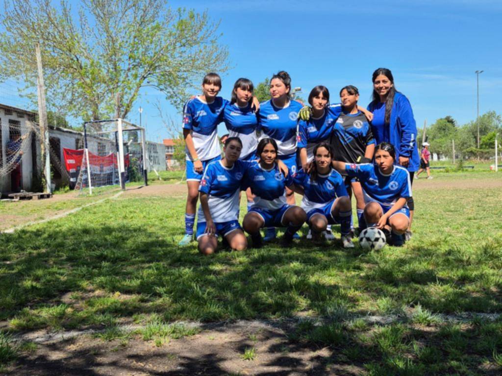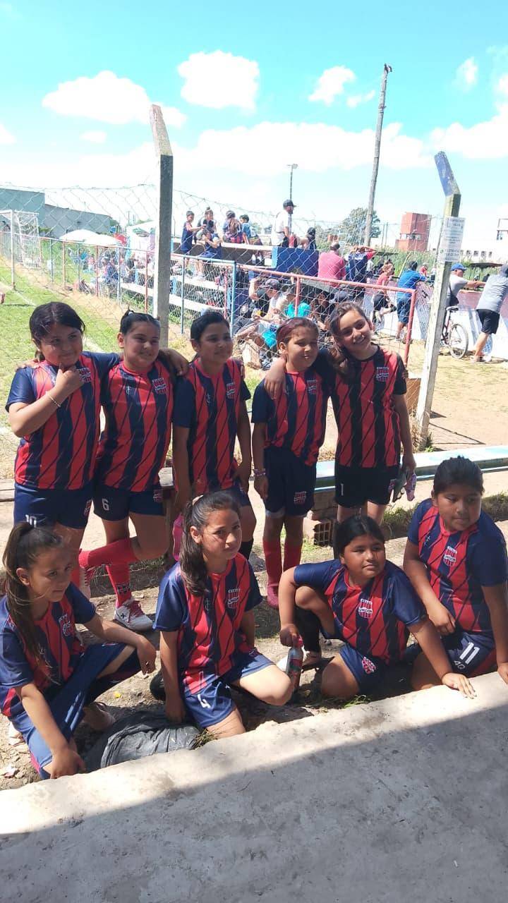 la camiseta azulgrana señidas al cuerpo de las nenas de la sub 10 de unidos de olmos