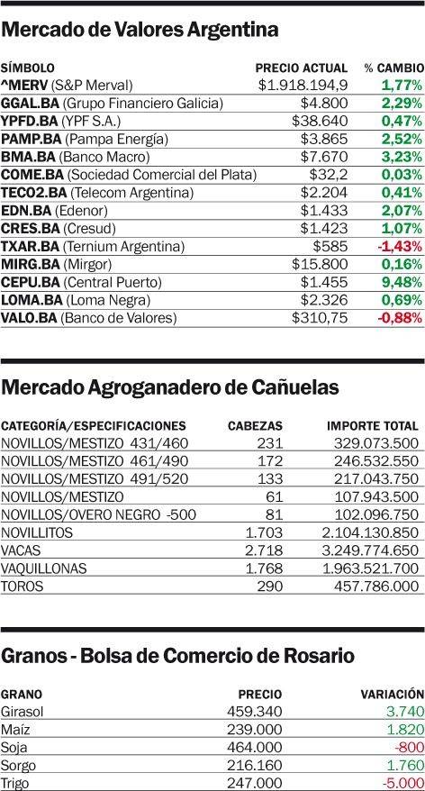 El anuncio generó una reacción inmediata: las acciones argentinas que cotizan en Wall Street avanzaron hasta 11% y los bonos en dólares rebotaron hasta 4%. El S&P Merval cerró con una suba de 1,48%, hasta los 1.912.738 puntos, y medido en dólares ganó 2,4%. Entre las acciones líderes se destacaron Central Puerto (8,6%), Grupo Supervielle (6,9%) y Banco Macro (3,5%).