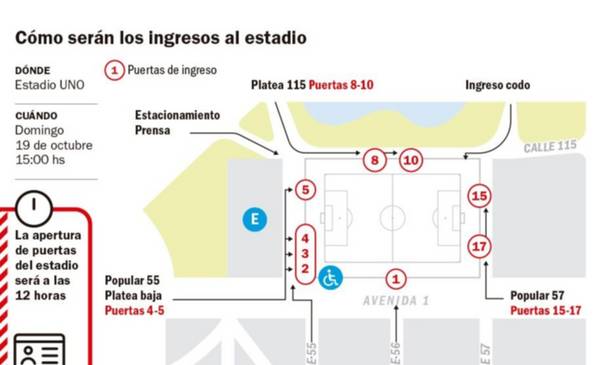 Aprevide informó que la apertura de las puertas del estadio será a partir de las 12, por los controles. Habrá Derecho de Admisión