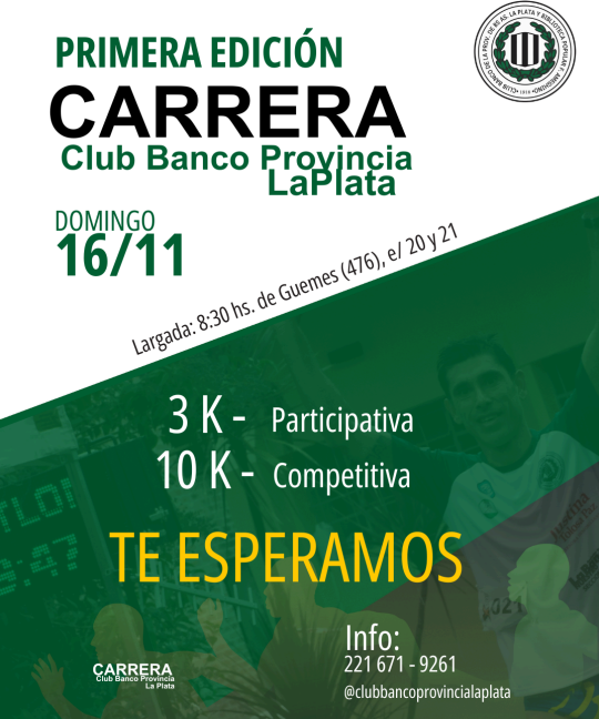 El próximo domingo 16 de noviembre, el Club Banco Provincia de La Plata realizará la 1° edición de su Carrera, una propuesta deportiva y recreativa que invita a toda la comunidad a participar y disfrutar de una jornada saludable en las calles de City Bell.