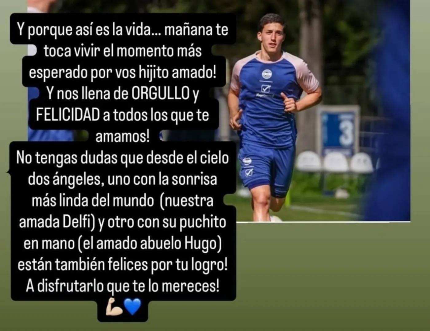 “Y porque así es la vida… mañana te toca vivir el momento más esperado por vos, hijito amado! Y nos llena de ORGULLO y FELICIDAD a todos los que te amamos!", expresó su mamá. Y además, agregó: "No tengas dudas que desde el cielo dos ángeles, uno con la sonrisa más linda del mundo (nuestra amada Delfi) y otro con su puchito en mano (el amado abuelo Hugo) están también felices por tu logro! A disfrutarlo que te lo mereces!”.