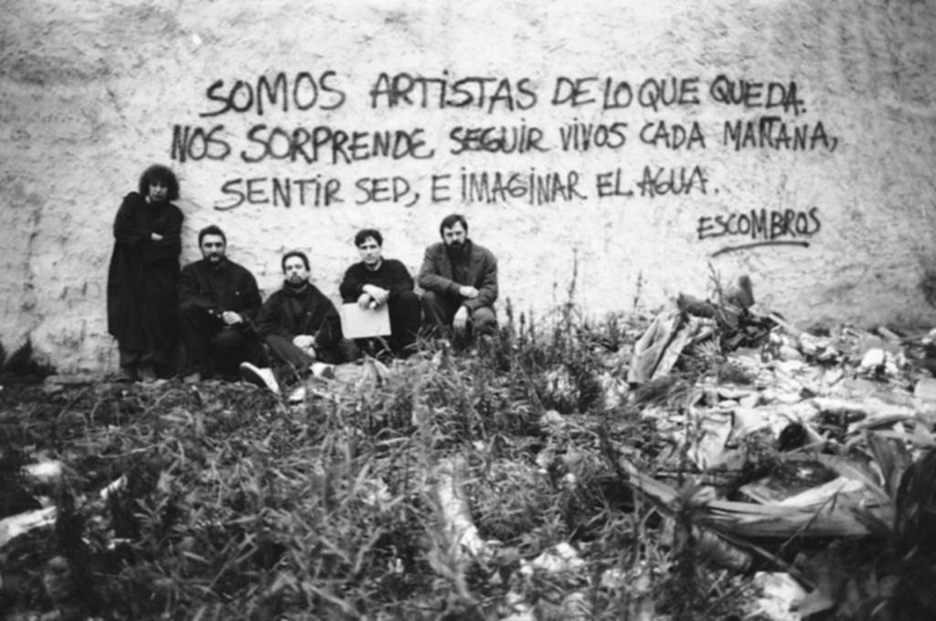 El grupo jamás desapareció. Como todo, tuvo su época de esplendor y sus pausas. Nunca dejaron de observar el mundo y torearlo. Sus resultados hablan de un trabajo conjunto que se fue redondeando gracias al permanente intercambio. Estuvo siempre y nunca arrió sus banderas. Nació entre motoniveladoras y destrozos en los preparativos de una autopista. Y sus cultores le añadieron al nombre –Escombros- una frase que le dio filosofía y mayor alcance a esa performance fundacional: “Somos artistas de lo que queda: nos sorprendemos estar vivos cada mañana y tener sed e imaginar el agua”.