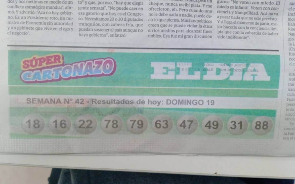 En tanto, el pozo principal del juego, pasa a tener 4.000.000 de pesos en la jugada que comenzó el pasado jueves con la entrega de los cartones junto a la edición impresa de EL DIA. En tanto que sigue vigente la posibilidad de ganar un auto Renault Kwid 0 KM o 20.0000.000 de pesos.