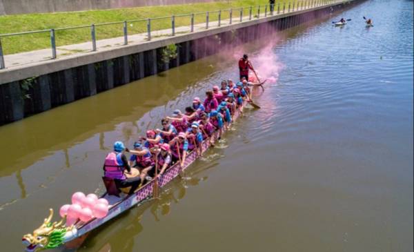 Este fin de semana la asociación Dragones Rosas realizó una “remada rosa” en la región. Fue acompañada por familiares, amigos y vecinos que acompañaron desde el costado del canal, alentando mientras remaban las integrantes de la asociación por el Día Internacional del Cáncer de Mama, que se conmemoró ayer. Kayakistas y distintas embarcaciones se unieron a esta travesía, llenando el agua de globos, sonrisas y energía.