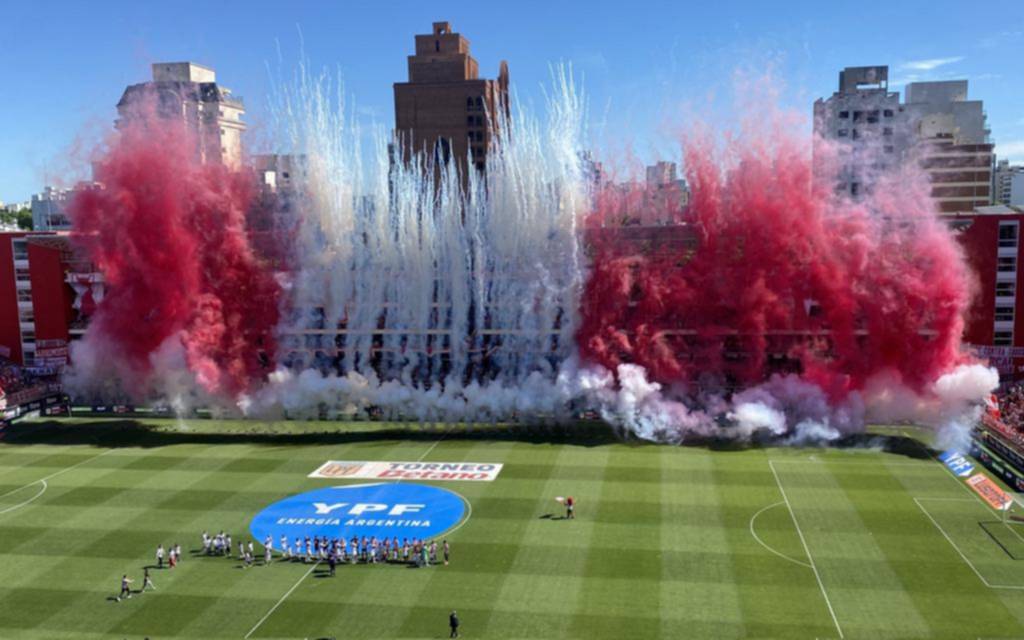 De esta forma, con los protagonistas en el campo de juego, se encendieron las bombas de humo que habían sido colocadas con anterioridad. Una vez prendidas, el color blanco y rojo predominaron y pintaron la soleada tarde primaveral en UNO.