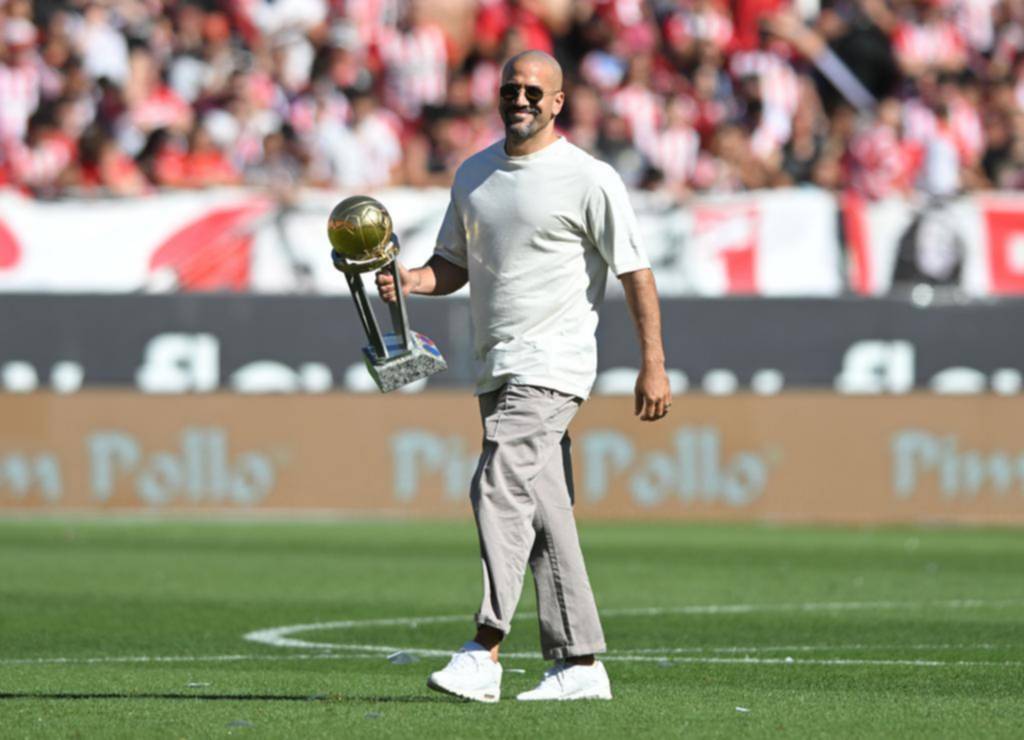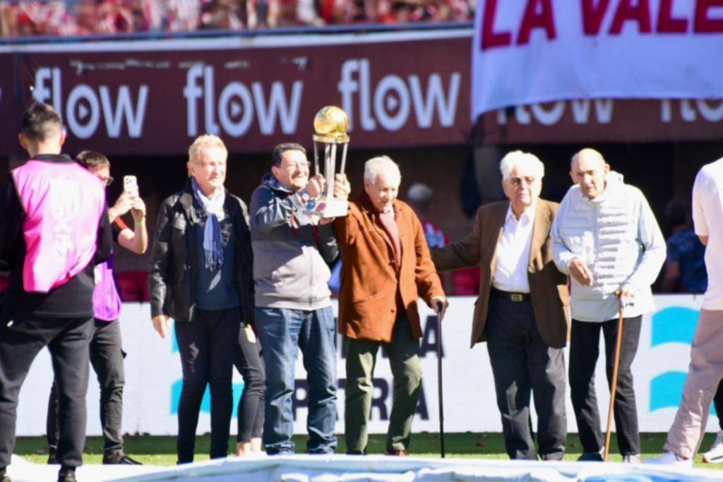 Juan Sebastián Verón llevó la copa del mundo en el entretiempo para que ingresasen los campeones de old trafford / iván campos