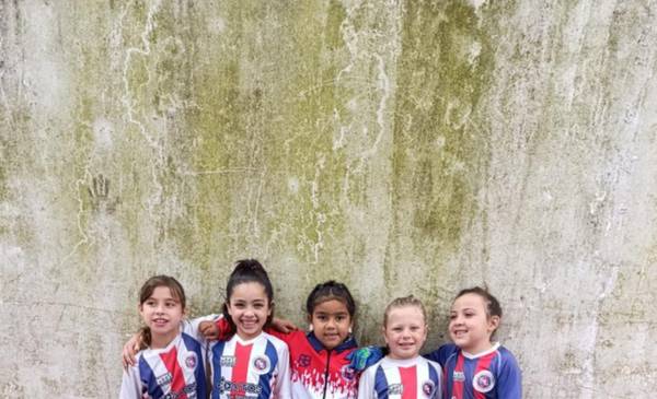 felices por donde se las mire aparecen en la foto las nenas de la sub 10 de unión vecinal