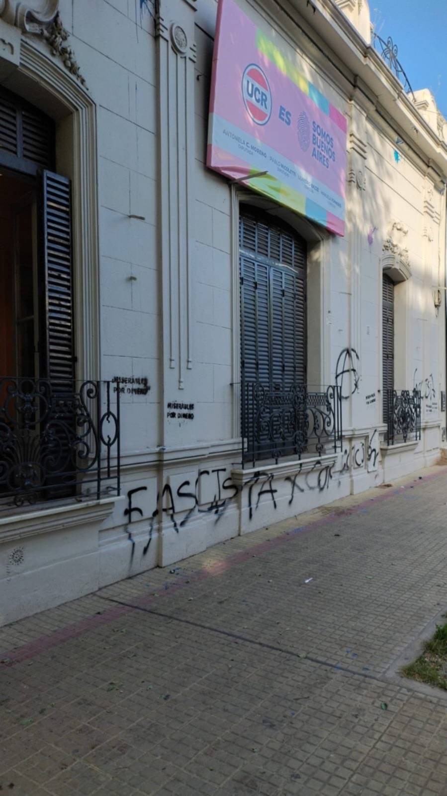 Denuncian nuevo ataque al comité de la UCR en La Plata: daños y mensajes violentos
