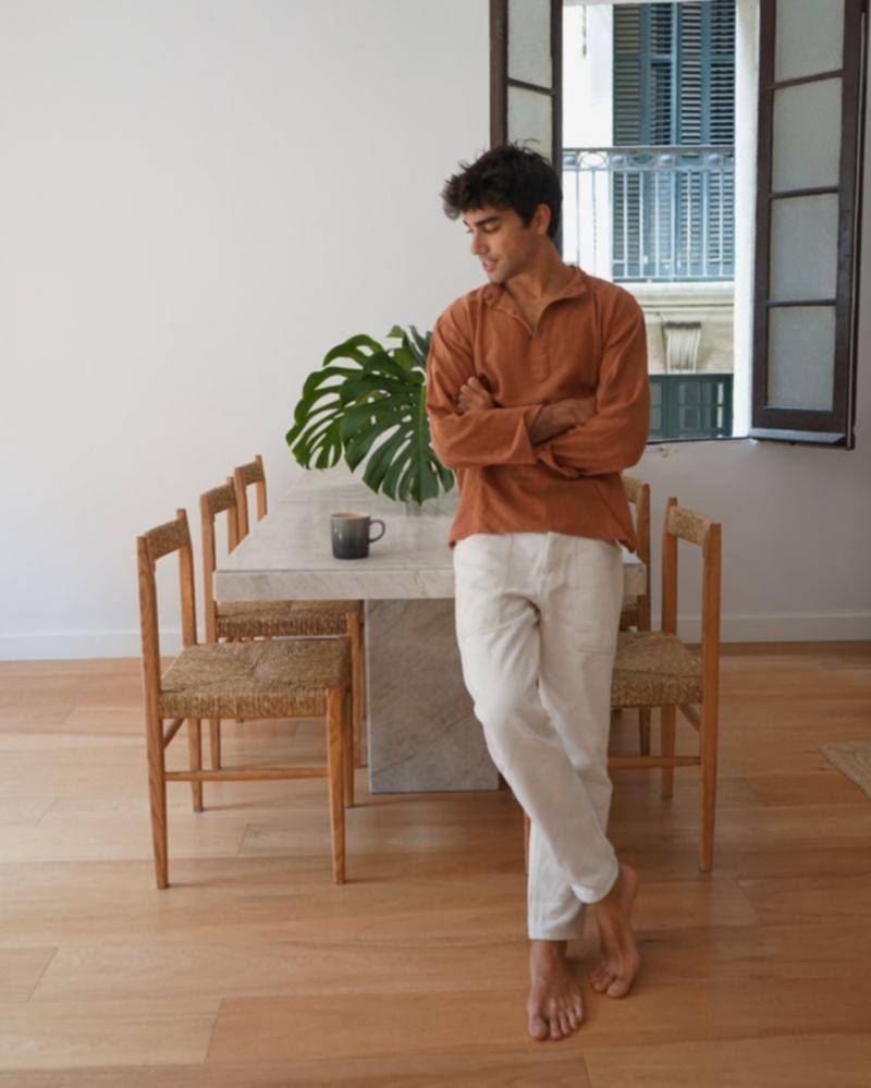 En el día a día, este material se adapta con facilidad. Un pantalón de lino recto, una camisa de cuello mao o una bomber sin forro pueden elevar un look básico. El secreto está en la proporción: piezas amplias, cortes limpios y una estructura que se percibe liviana. El lino se lleva con mocasines, sandalias o zapatillas blancas; con actitud relajada pero siempre cuidada.