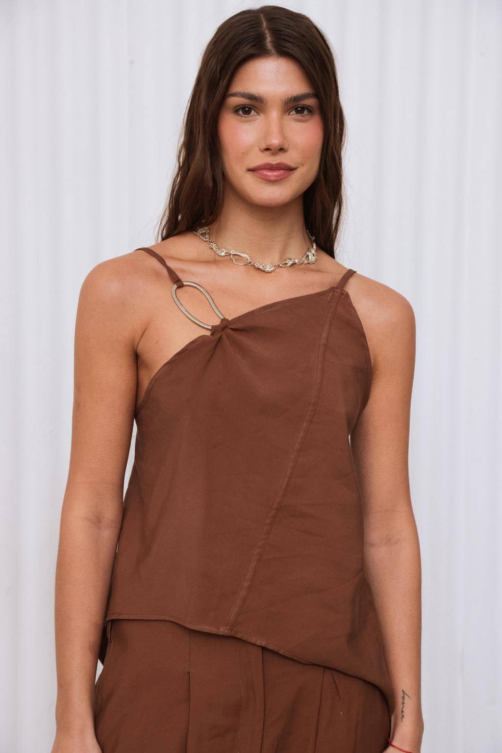 Las prendas de un solo hombro son las grandes aliadas de quienes buscan destacar sin esfuerzo. En vestidos midi, maxis con vuelo o tops minimalistas, este corte se adapta tanto a looks de día como de noche. Es una silueta que combina con pantalones amplios, faldas envolventes o shorts de lino, creando conjuntos versátiles y contemporáneos.