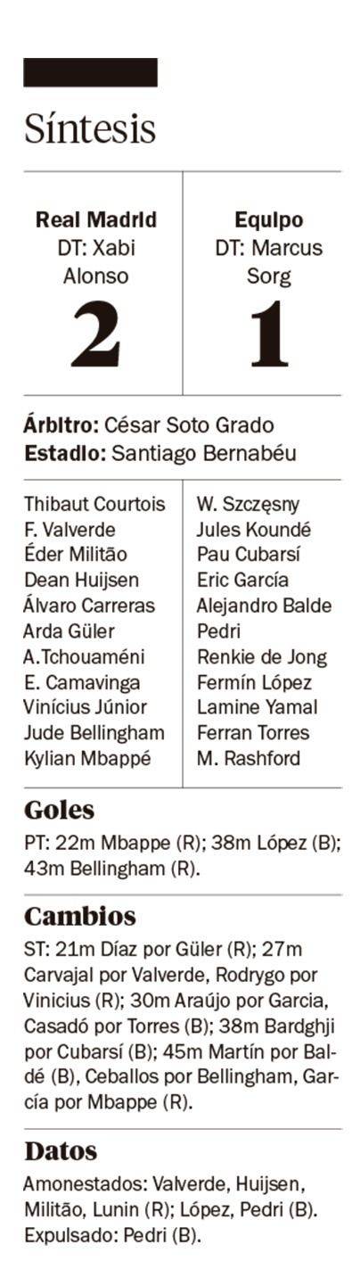 Por su parte, los dirigidos por Xabi Alonso arrancaron con todo. Primero, un penal que el árbitro anuló correctamente a instancias del VAR, tras un toque de Lamine Yamal sobre Vinicius. Poco después Kylian Mbappé convirtió desde fuera del área, aunque el tanto fue invalidado por un fuera de juego milimétrico. Aunque como dice el dicho, la tercera es la vencida, y esta vez la oportunidad sí valió.