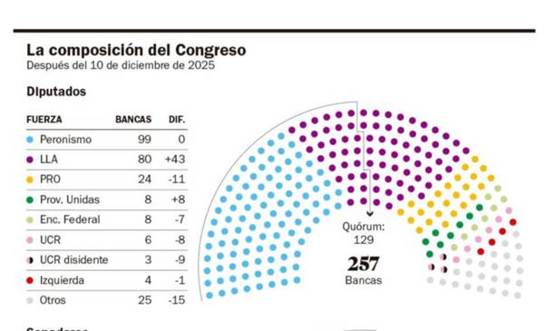 En términos de números, el resultado electoral permite avizorar que el hemiciclo de la Cámara Baja quedará dividido en dos grandes sectores: de un lado, los libertarios con sus aliados de Pro y UCR.