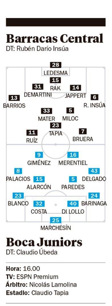 Boca enfrentará hoy a Barracas Central en el postergado partido de la duodécima fecha del Torneo Clausura, por el fallecimiento de su entrenador Miguel Ángel Russo, en busca de un lugar en los puesto de clasificación a la Copa Libertadores.