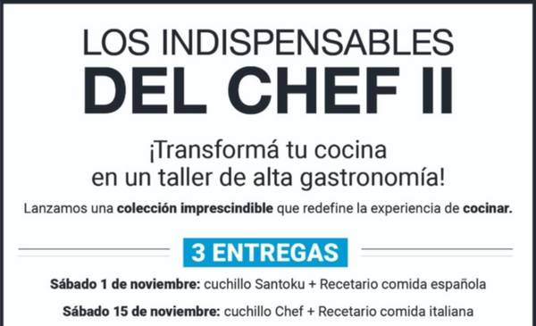 Desde el próximo sábado se lanza una colección imprescindible que redefine la experiencia de cocinar. "Los indispensables del Chef II" ya se puede reservar: pedíselo a tu canillita del diario EL DIA, a sólo $14.900.