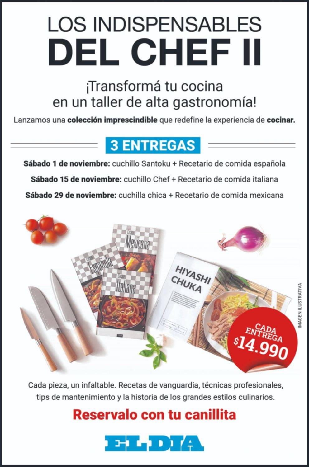 Desde este sábado se lanzó una colección imprescindible que redefine la experiencia de cocinar. "Los indispensables del Chef II" ya se puede reservar: pedíselo a tu canillita del diario EL DIA, a sólo $14.990.