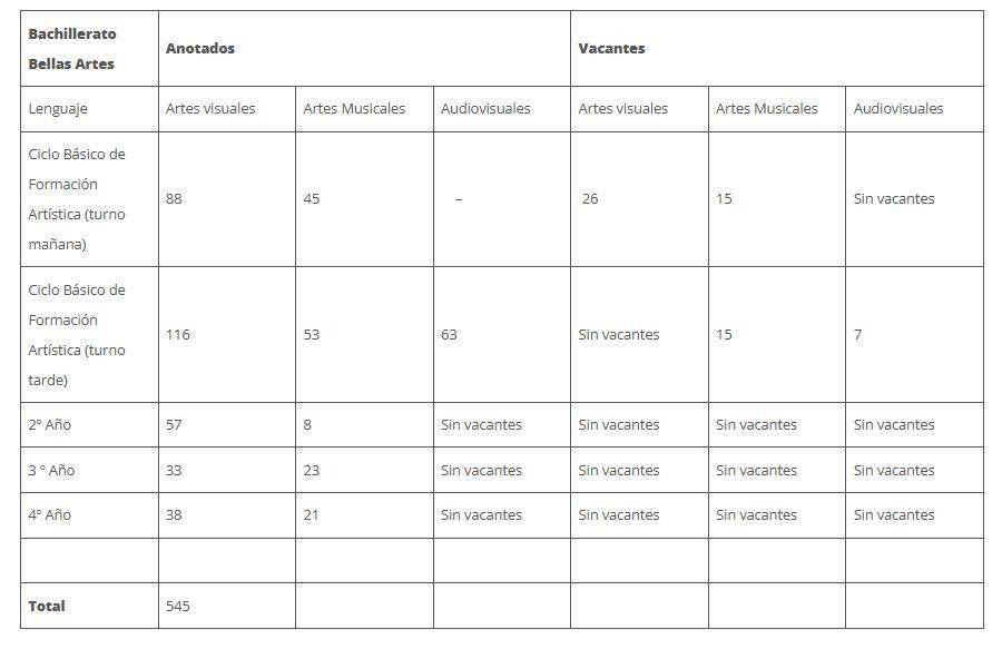 Ciclo Básico de Formación Artística del Bachillerato de Bellas Artes “Prof. Francisco Américo De Santo”: 11.15 horas.
